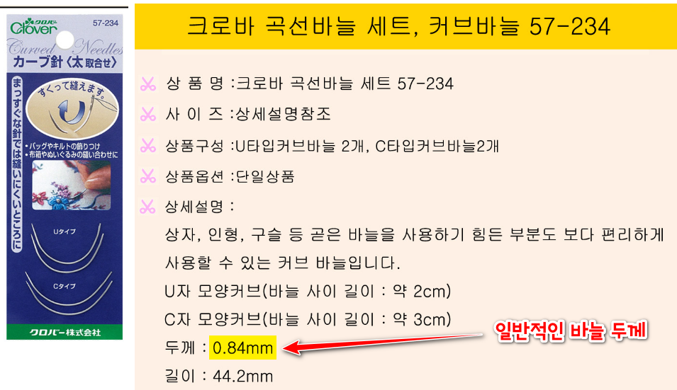 1자 바늘로 어렵게 보수하시는 모습이 아타까워 곡선 바늘을 알아보던 중 가죽용보다 얇은 일반적인 바늘 두께의