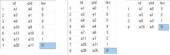 select id, pid, 0 lev