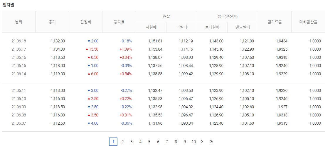 이번에는 다음 사이트에서 확인 가능한 대한민국 환율정보를 모아봤습니다.