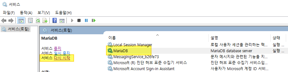>> my.ini 파일 수정 : 노란색 영역의 3개 항목을 추가하신 후 MySQL / MariaDB 서비스를 재시작해주시면 됩니다.