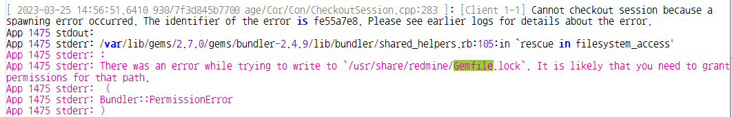 | [Redmine] We're sorry, but something went wrong. / Gemfile.lock 오류 수정 (0) | 2023.03.25 |