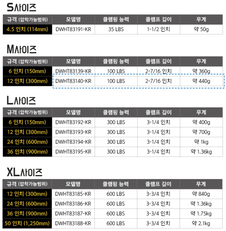 | Dewalt (디월트) 클램프 규격표 (0) | 2020.07.18 |