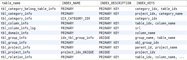 | MariaDB / MySQL 5.7 / MySQL 8.0 information_schema 의 Table 목록 비교 (0) | 2022.10.02 |